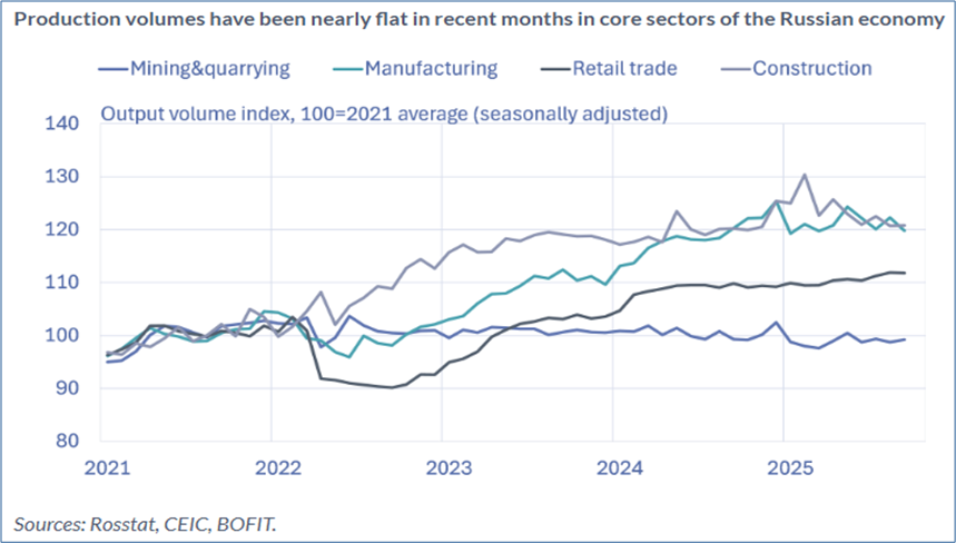 BOFIT Weekly: Russlands wirtschaftliche Entwicklung verläuft weiterhin schleppend und leidet weiterhin unter Ungleichgewichten, 07.11.25