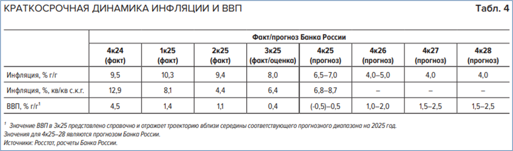 Gleichzeitig aktualisierte sie ihre „Mittelfristige Prognose“ für die Entwicklung der russischen Wirtschaft bis 2028. „Überhitzte“ Wachstumsraten von gut 4 Prozent wie in den Jahren 2023 und 2024 erwartet die Zentralbank nicht mehr. Ihre Wachstumsprognose für das Jahr 2025 nahm sie auf nur noch +0,5% bis +1,0% zurück. Dabei hält sie es für möglich, dass das reale Bruttoinlandsprodukt im vierten Quartal 2025 um bis zu 0,5 Prozent niedriger sein wird als vor einem Jahr. Eine Rezession erwartet die Zentralbank – im Gegensatz zu einigen Analysten – in Russland aber nicht. 2026 rechnet sie mit einem Wirtschaftswachstum von +0,5% bis +1,5%. Ab 2027 wird die russische Wirtschaft laut der Zentralbank wieder ihr Wachstumspotenzial von +1,5% bis +2,5% ausschöpfen.