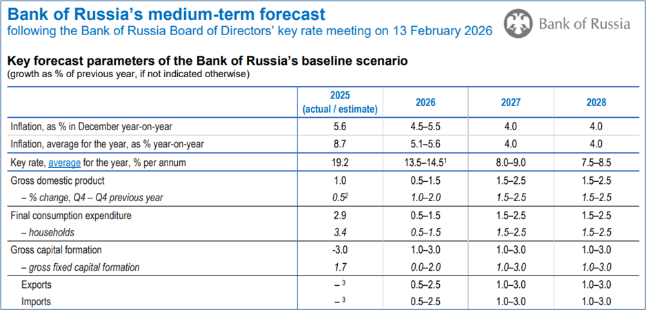 Bank of Russia: Medium-term forecast, 13.02.26 (Auszug)