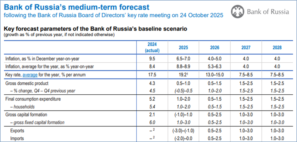 Russische Zentralbank: Bank of Russia’s medium-term forecast, 24.10.25; (Ausschnitt)