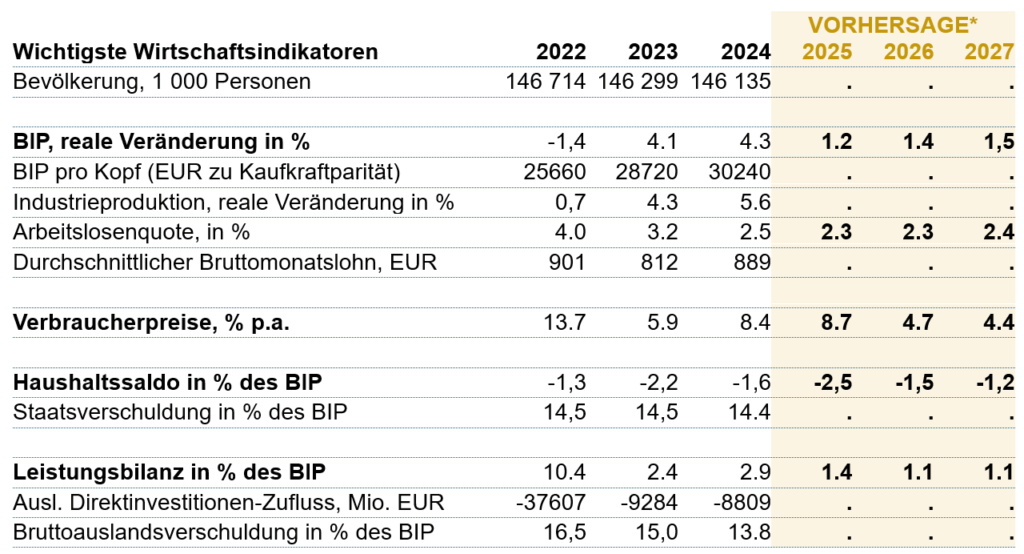 Wichtigste Wirtschaftsindikatoren mit Prognosen für 2025 bis 2027