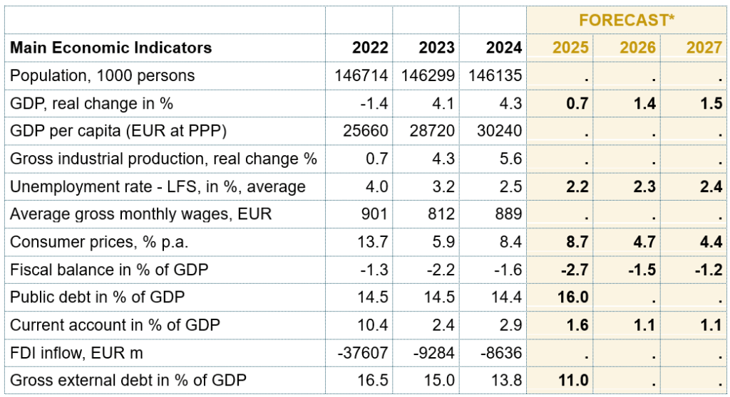 In seiner „Herbstprognose“ im Oktober 2025 hatte das wiiw 2025 in Russland noch einen BIP-Anstieg von 1,2 Prozent erwartet. In seiner Ende April veröffentlichten „Frühjahrsprognose“ hatte das Institut sogar damit gerechnet, dass das Wachstum 2025 noch 2,0 Prozent erreicht.